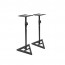 - Heavy-duty triangular metal bases (6" x 6.5") with carpet spikes